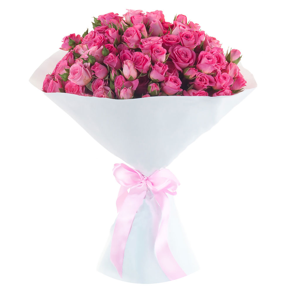 На фото представлен образец. Объем букета зависит от выбранного вами размера. Точное количество цветов и цветовую гамму вы можете уточнить у менеджера по телефону.