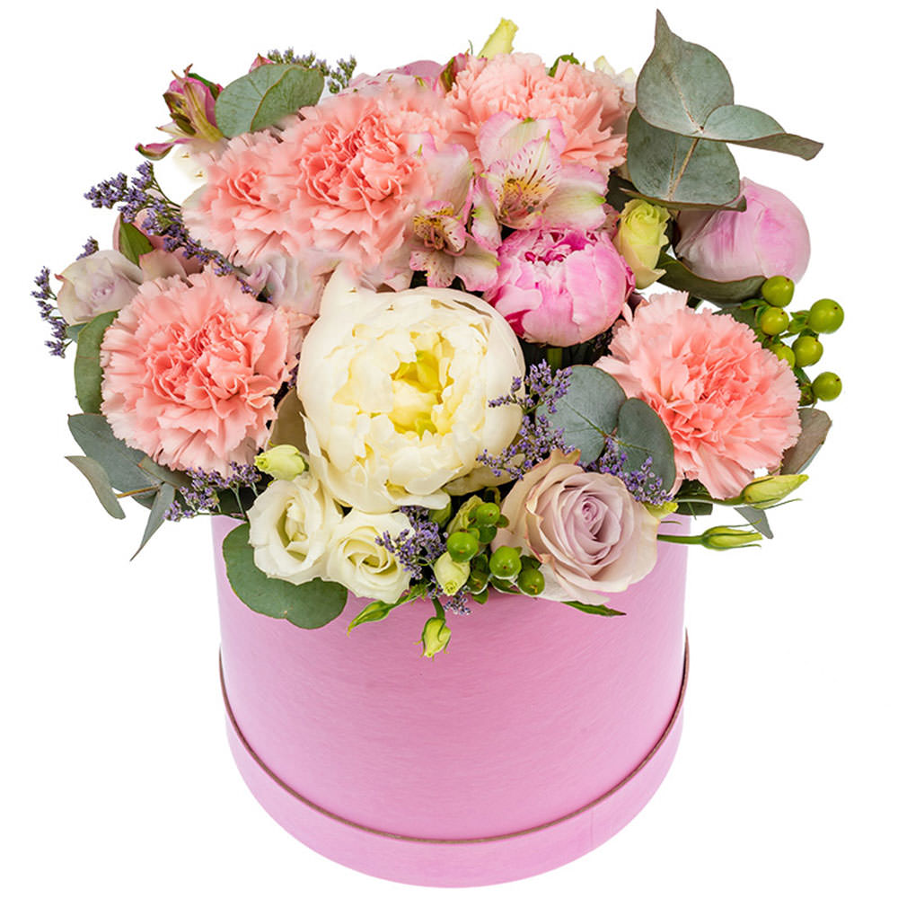 На фото представлен образец. Объем коробки зависит от выбранного вами размера. Точное количество цветов и цветовую гамму вы можете уточнить у менеджера по телефону.