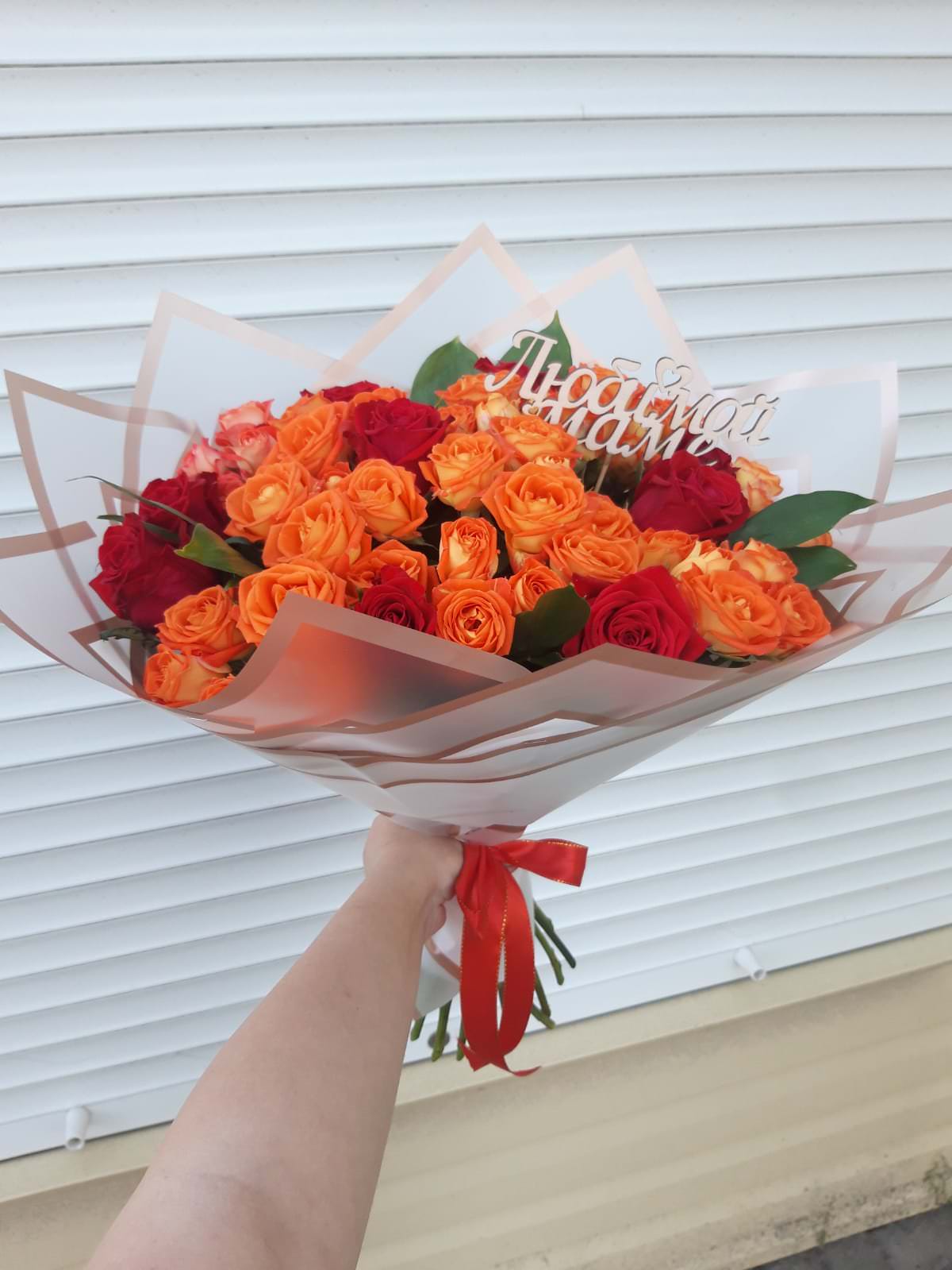 Большое спасибо за доставку. Поздравляли маму в отпуске в г. Цахкадзор из Москвы)) букет красивый, мама довольна:-)